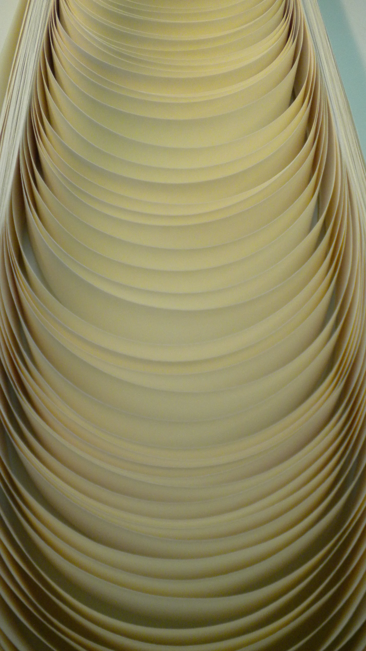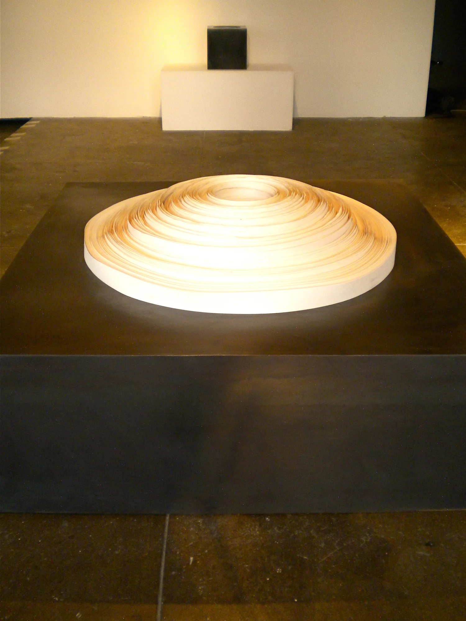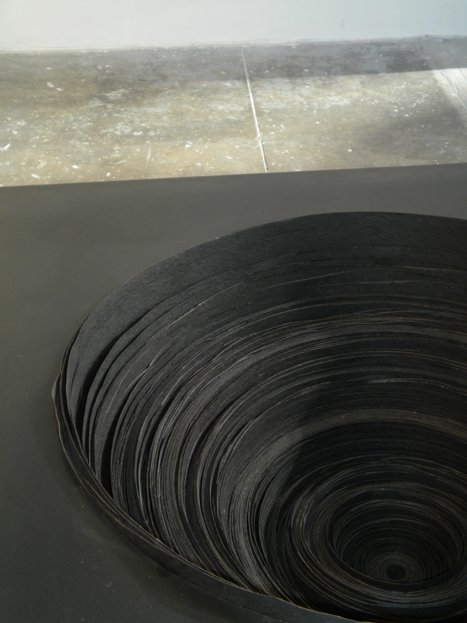 Orbit.   4’x 4’.  Salvaged drywall paper, fabricated steel.