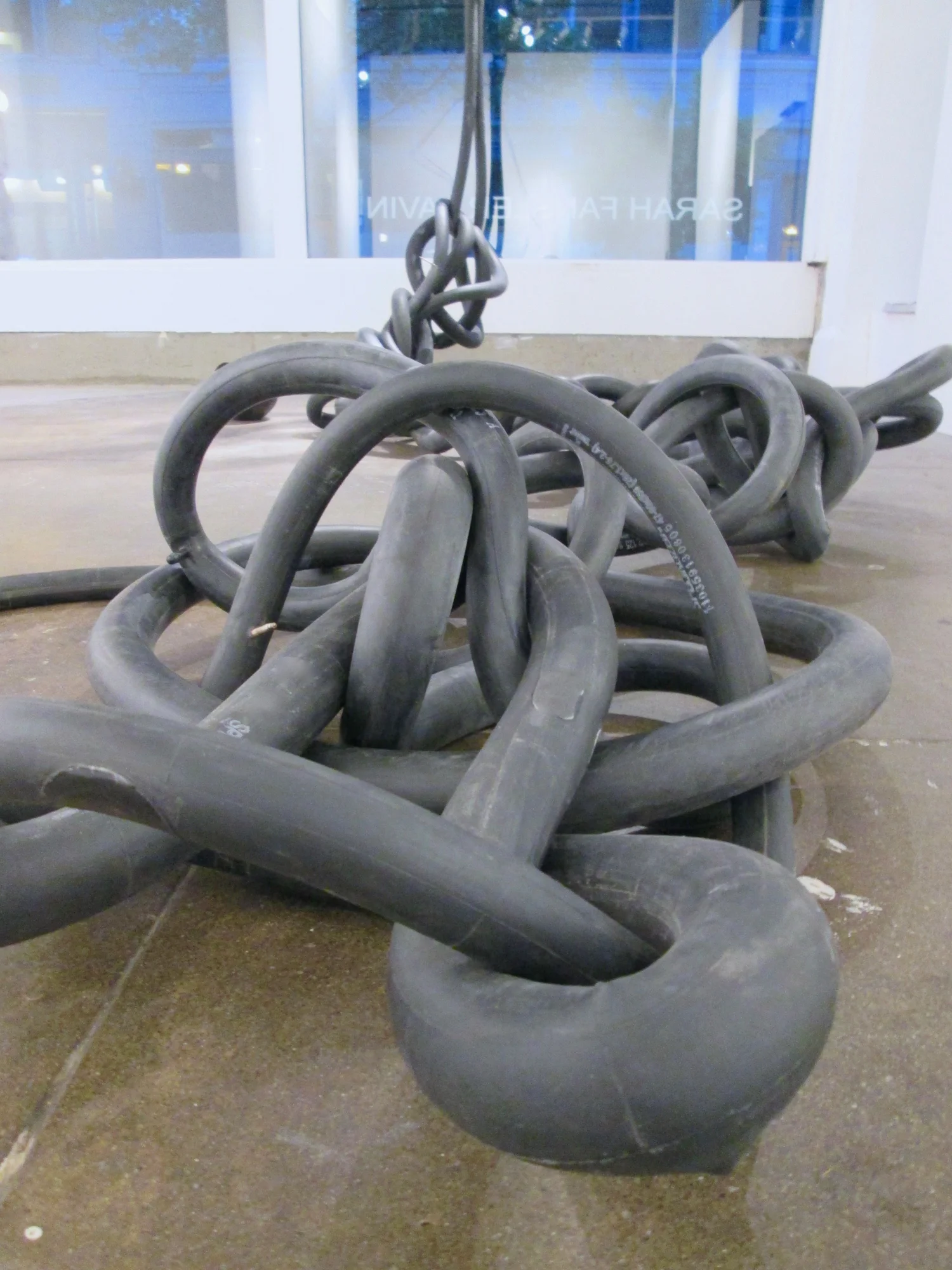 resuscitate.   Punctured, re-patched and re-filled bike inner tubes from the artists 3 bikes over the course of 5 years.