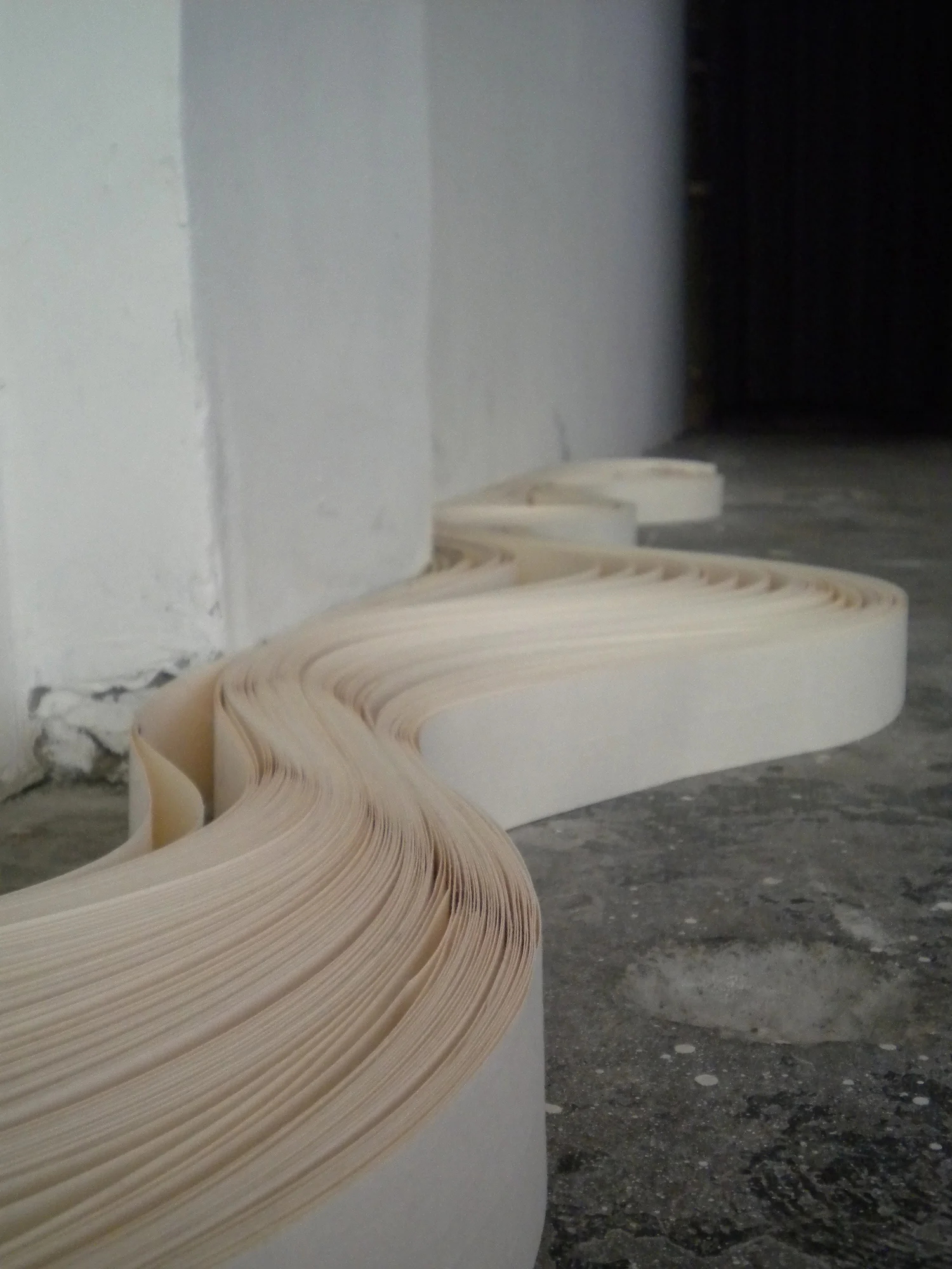 Shoreline.   14’x 18”. Salvaged drywall tape.