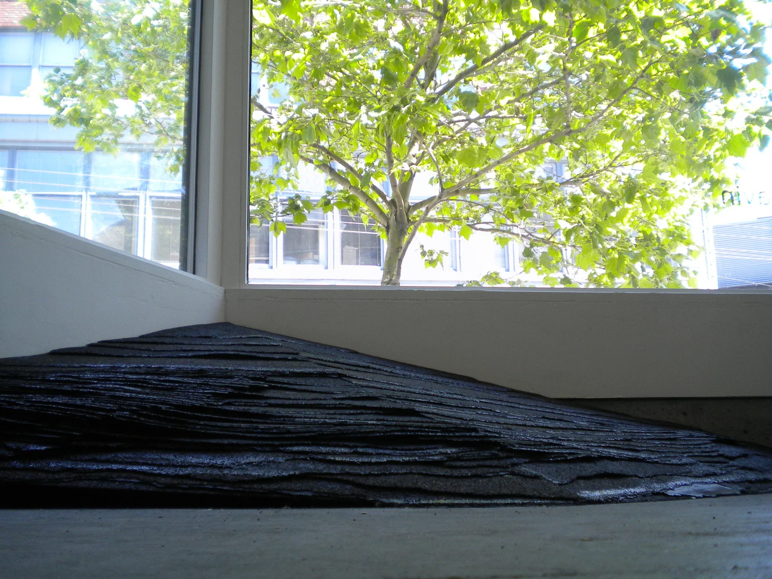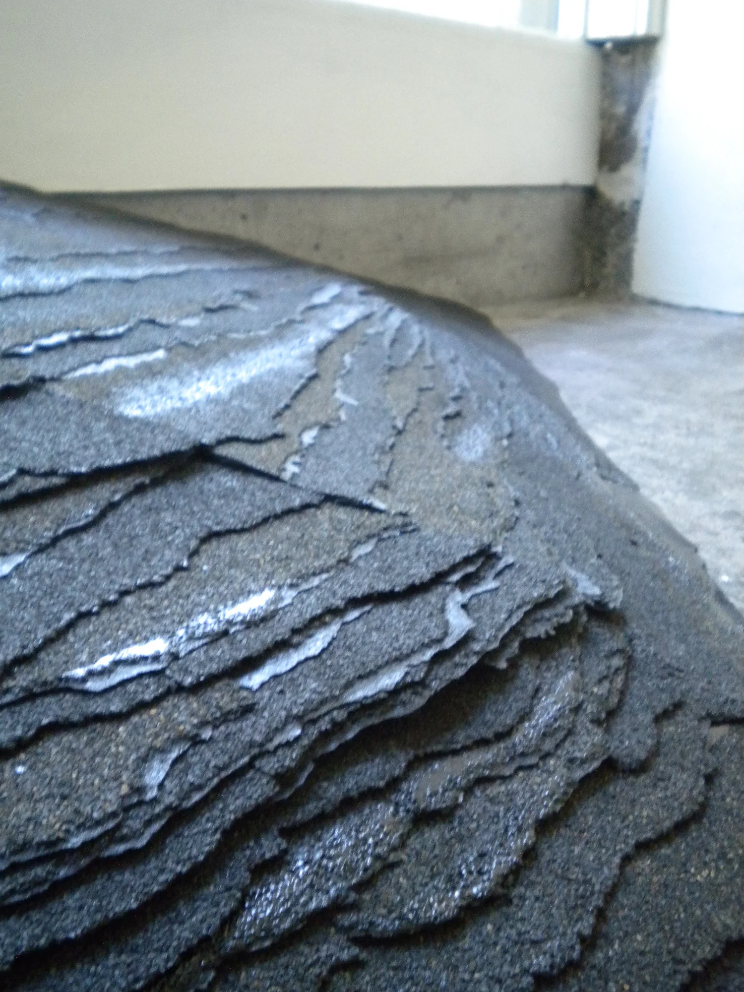KING Tide.  5’x 3’x 18”. Torn and torched asphalt tiles.